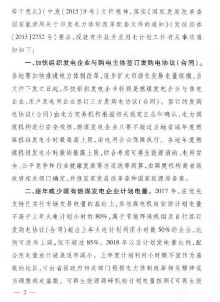 中國儲能網(wǎng)訊:《國家發(fā)改委、國家能源局關(guān)于有序放開發(fā)用電計劃的通知》文件近日正式下發(fā)。政策要點:加快發(fā)電企業(yè)與購電主體簽訂購電協(xié)議;逐年減少既有燃煤發(fā)電企業(yè)計劃用電量;原則上不再安排9號文件實施后核準(zhǔn)的煤電機組;規(guī)范和完善市場化交易電量價格調(diào)整機制;有序開放跨省區(qū)送受電計劃;優(yōu)先保障風(fēng)電、太陽能、核電等新能源發(fā)電;參與市場交易的電力用戶不再執(zhí)行目錄電價。