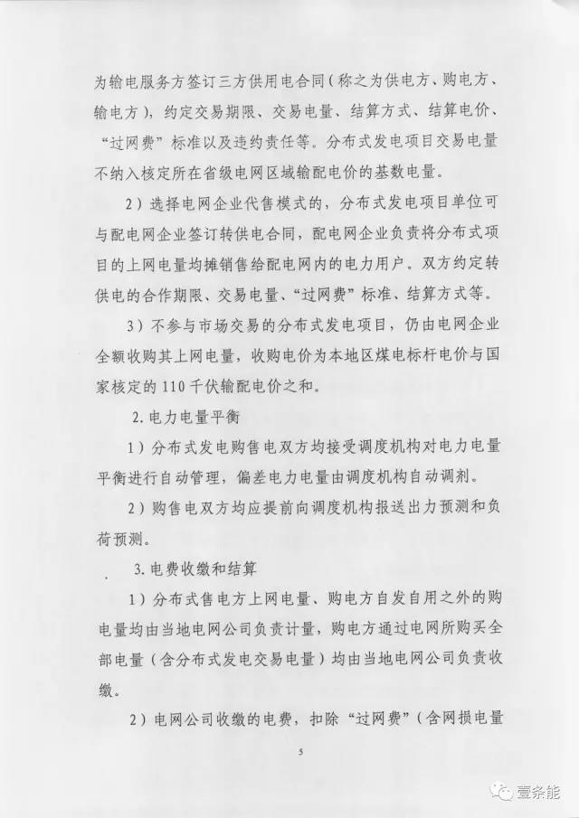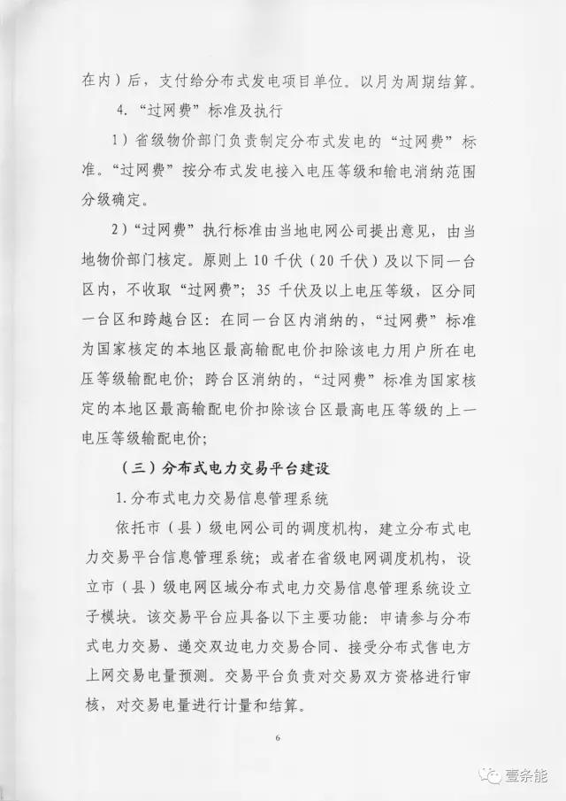 4、過(guò)網(wǎng)費(fèi)標(biāo)準(zhǔn):電力用戶(含微電網(wǎng)內(nèi)部)自發(fā)自用及在10(20)千伏電壓等級(jí)且同一變電臺(tái)區(qū)內(nèi)消納,免收過(guò)網(wǎng)費(fèi);35-100千伏接入電網(wǎng)且在同一變電臺(tái)區(qū)內(nèi)消納,過(guò)網(wǎng)費(fèi)標(biāo)準(zhǔn)為國(guó)家核定的本地區(qū)最高輸配電價(jià)扣除改電力用戶所在電壓等級(jí)輸配電價(jià)。