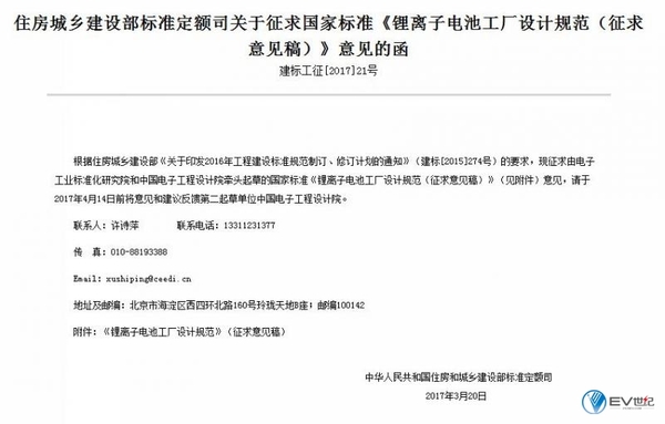 中國儲能網(wǎng)訊:3月21日,住房城鄉(xiāng)建設(shè)部標(biāo)準(zhǔn)定額司公布《鋰離子電池工廠設(shè)計規(guī)范(征求意見稿)》(以下簡稱《設(shè)計規(guī)范》),《設(shè)計規(guī)范》就鋰電池企業(yè)工廠設(shè)計的國家標(biāo)準(zhǔn)公開征求意見。