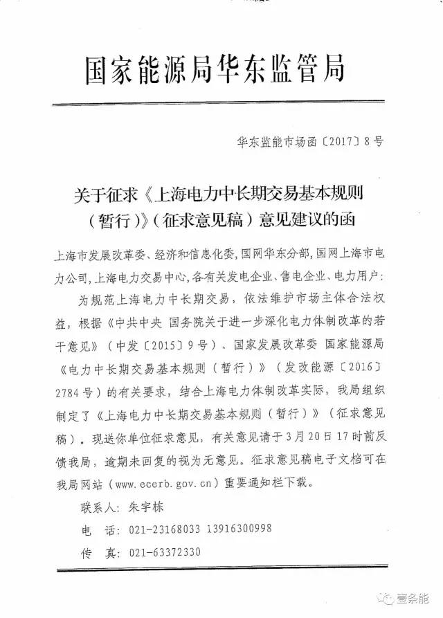 中國儲能網(wǎng)訊:華東能監(jiān)局官網(wǎng)今日發(fā)布關(guān)于征求《上海電力中長期交易基本規(guī)則(暫行)》(征求意見稿)意見建議的函,壹條能整理了要點(diǎn)如下: