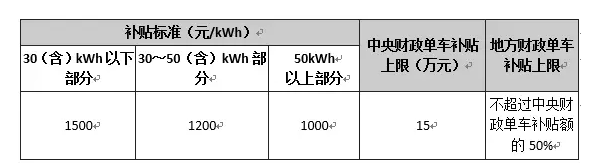 新能源貨車和專用車以提供驅(qū)動(dòng)動(dòng)力的動(dòng)力電池總儲(chǔ)電量為依據(jù),采取分段超額累退方式給予補(bǔ)貼,具體如下: