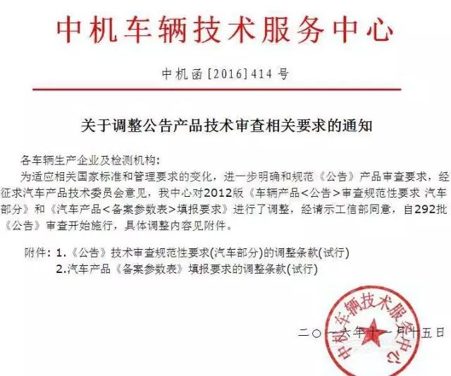 1.《公告》技術(shù)審查規(guī)范性要求(汽車部分)的調(diào)整條款(試行)