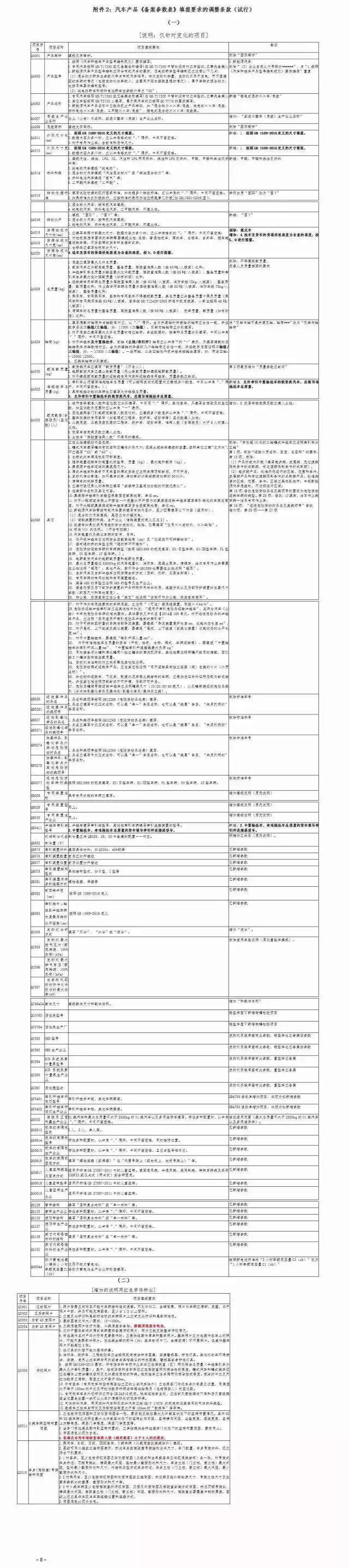 2.汽車產(chǎn)品《備案參數(shù)表》填報要求的調(diào)整條款(試行)