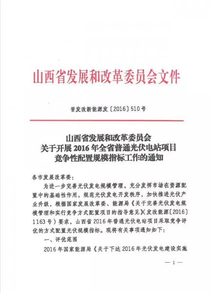 中國儲能網(wǎng)訊:日前,山西發(fā)改委下發(fā)《關(guān)于開展2016年全省普通光伏電站競爭性配置規(guī)模指標(biāo)工作的通知》,要求各市發(fā)改委須于7月28日前,統(tǒng)一組織各市參與評優(yōu)的光伏發(fā)電項目,完成資料報送工作。