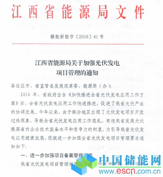 中國(guó)儲(chǔ)能網(wǎng)訊:日前,江西省能源局發(fā)布《關(guān)于加強(qiáng)光伏發(fā)電項(xiàng)目管理的通知》,(以下簡(jiǎn)稱《通知》),《通知》指出,今年以來(lái),由于部分地區(qū)出現(xiàn)了光伏發(fā)電項(xiàng)目開(kāi)發(fā)過(guò)熱現(xiàn)象,導(dǎo)致江西省光伏發(fā)電應(yīng)用工作混亂,有違江西省發(fā)展光伏提高省內(nèi)企業(yè)技術(shù)裝備水平和竟?fàn)幜Φ某踔?。為引?dǎo)江西省光伏發(fā)電應(yīng)用健康發(fā)展,現(xiàn)就進(jìn)一步加強(qiáng)江西省光伏發(fā)電項(xiàng)目管理要求通知。