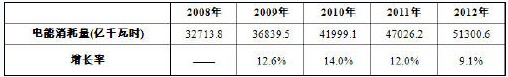 表1 2008-2012年中國(guó)電能消耗量與增長(zhǎng)