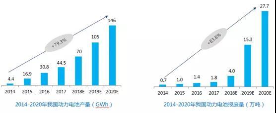 國內(nèi)相關(guān)機(jī)構(gòu)預(yù)測,廢舊動力電池所創(chuàng)造的回收市場規(guī)模在2018年可達(dá)50億元,2020年-2023年將達(dá)到65億元-150億元。