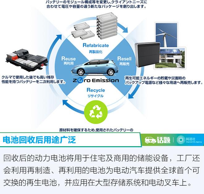 今年3月,日產(chǎn)汽車、住友商事株式會社及其合資企業(yè)4R Energy,在日本開設(shè)了首家專門從事于電動車鋰離子電池再利用和再處理的工廠。4R Energy是家專注于電動車電池的有效再利用的企業(yè),其曾經(jīng)開發(fā)過一款可快速測量廢舊電池性能的系統(tǒng),目的就是為了處理從日本各地收集上來的電池。電池被回收后,這個(gè)工廠將利用它們制造可再生電池,應(yīng)用于大型存儲系統(tǒng)、電動叉車,以及住宅和商用的儲能設(shè)備。