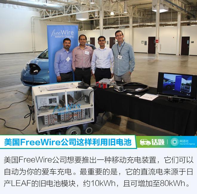 早在2015年,美國的FreeWire公司便推出了一款叫Mobi的電動汽車移動充電站。這個(gè)移動充電站很有意思,有點(diǎn)類似于我們所認(rèn)知的移動充電車,像個(gè)大號的“充電寶”。該充電站的直流電來自于日產(chǎn)LEAF的舊電池模塊,后者由于是電動車的鼻祖,且銷量一直居高不下,所以淘汰下來的電池自然不會少。