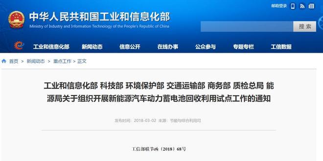 轉(zhuǎn)過來到2月份,工信部、科技部、環(huán)保部、交通部、商務(wù)部、質(zhì)檢總局、能源局印發(fā)《新能源汽車動力蓄電池回收利用管理暫行辦法》的通知,鼓勵汽車生產(chǎn)企業(yè)、電池生產(chǎn)企業(yè)、報(bào)廢汽車回收拆解企業(yè)與綜合利用企業(yè)等通過多種形式,合作共建、共用廢舊動力蓄電池回收渠道。