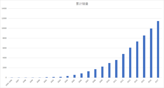 圖3 豐田混合動(dòng)力汽車(chē)全球累計(jì)銷(xiāo)量(單位:千輛)