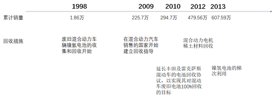 1998年,累計(jì)銷(xiāo)量達(dá)到1.86萬(wàn)輛,啟動(dòng)廢舊鎳氫電池回收計(jì)劃
