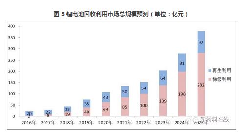 我國新能源汽車行業(yè)的快速發(fā)展帶動了動力電池及相關(guān)材料產(chǎn)業(yè)的快速發(fā)展?;趧恿﹄姵氐纳芷冢艘蹌恿﹄姵氐幕厥绽脤⑹且粋€非常重要的新興領(lǐng)域。從 2018-2019 年開始,我國將會有大量的動力電池進(jìn)入退役期(2023 年之前主要是磷酸鐵鋰電池)。退役電池將先進(jìn)行梯級利用、再實(shí)施資源再生利用,預(yù)計市場總規(guī)模在 2020 年將超過 100 億元,到 2025 年將達(dá)到 380 億元左右。其中,梯級利用是最具前景的細(xì)分領(lǐng)域,并有望帶動“儲能”這個巨大新興市場的形成。