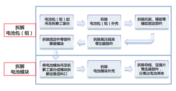 新能源汽車(chē)動(dòng)力電池體積龐大、結(jié)構(gòu)復(fù)雜,不當(dāng)?shù)牟鸾馊菀讕?lái)電解液泄漏、短路起火、甚至爆炸等安全隱患?!恫鸾庖?guī)范》對(duì)廢舊動(dòng)力電池回收利用的安全性、作業(yè)程序、存儲(chǔ)和管理等方面進(jìn)行了嚴(yán)格要求,在一定程度上解決行業(yè)性的發(fā)展難題,規(guī)范了我國(guó)車(chē)用動(dòng)力電池的回收利用及拆解、專(zhuān)業(yè)性技術(shù)及動(dòng)力電池回收體系。