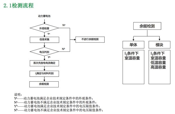 廢舊動(dòng)力電池經(jīng)過(guò)長(zhǎng)時(shí)間的使用,也可能出現(xiàn)物理結(jié)構(gòu)的松動(dòng)和電解液漏液等情況,給廢舊動(dòng)力電池二次利用帶來(lái)安全隱患。因此,廢舊動(dòng)力電池的剩余容量的檢測(cè)方法無(wú)疑是其二次使用安全的重要保障?!队嗄軝z測(cè)》規(guī)范了動(dòng)力電池外觀檢查、極性檢測(cè)、電壓判別、充放電電流判別、余能測(cè)試等檢測(cè)流程,為車(chē)用動(dòng)力電池的余能檢測(cè)提供評(píng)價(jià)依據(jù)。標(biāo)準(zhǔn)的實(shí)施,將有助于提高廢舊動(dòng)力蓄電池余能檢測(cè)的安全性和科學(xué)性。