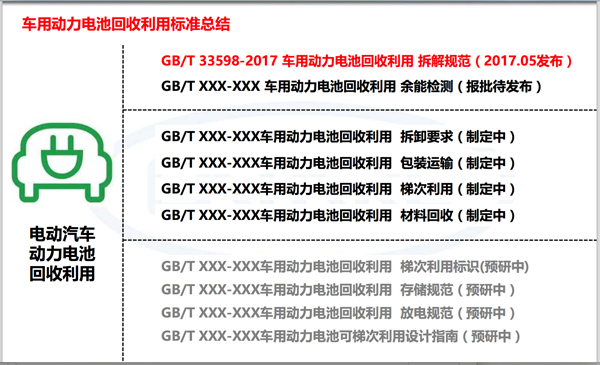 6月29日,GB/T33598-2017《車(chē)用動(dòng)力電池回收利用拆解規(guī)范》(下稱(chēng)《拆解規(guī)范》)及《車(chē)用動(dòng)力電池回收利用余能檢測(cè)》(下稱(chēng)《余能檢測(cè)》)國(guó)際標(biāo)準(zhǔn)宣貫會(huì)正式在張家港舉行,據(jù)悉,《拆解規(guī)范》已于5月17日公示發(fā)布,并確定于2017年12月1日正式開(kāi)始實(shí)施?!队嗄軝z測(cè)》已經(jīng)通過(guò)報(bào)批,有望于2018年內(nèi)正式發(fā)布實(shí)施。