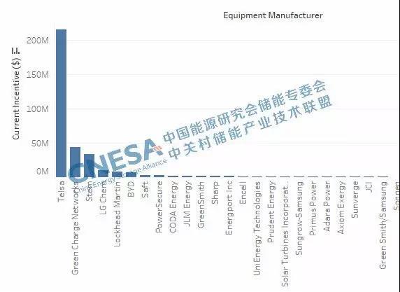 從申請(qǐng)SGIP補(bǔ)貼的儲(chǔ)能設(shè)備廠商來(lái)看,Tesla、LG Chem、Stem、Green Charge Networks、Sonnen、Lockhead Martin獲得補(bǔ)貼的項(xiàng)目數(shù)量、能量規(guī)模和金額都位居前列。尤其是Tesla,其與Solarcity等合作方合作的分布式儲(chǔ)能項(xiàng)目有將近4000個(gè)、共計(jì)270MWh的儲(chǔ)能項(xiàng)目申請(qǐng)資金(包括預(yù)留補(bǔ)貼資金、正處于補(bǔ)貼流程中以及補(bǔ)貼完成)的金額達(dá)到2.15億美元。