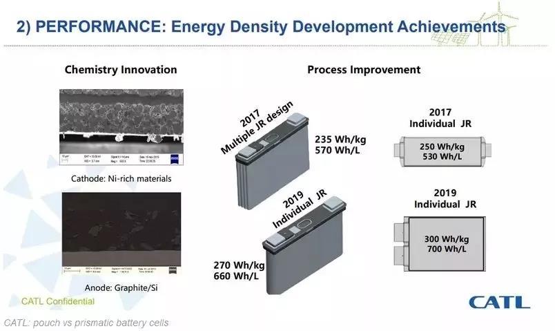 然而,路透社的消息來源卻有點路邊社的意思。由于此前CATL首席技術官羅伯特·蓋爾揚(Robert Galyen)曾展示單體電芯以及模組的產(chǎn)品路線圖。路線圖顯示,CATL將在2019年計劃生產(chǎn)230Wh/Kg的電芯產(chǎn)品。而路透社向相關業(yè)內(nèi)人士進行咨詢,該人士認為該產(chǎn)品的性能參數(shù)正與NCM811體系相符合。因此稱CATL將在2019年量產(chǎn)811。