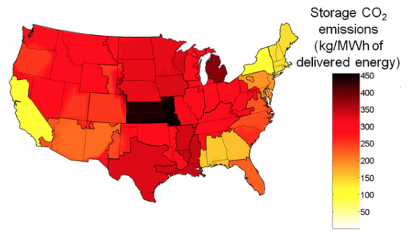 Hittinger和Azevedo在其全國范圍內對能源結構和能源價格進行建模,確定了當今美國各地部署的儲能系統(tǒng)幾乎都會增加排放。這個結果讓人驚訝。