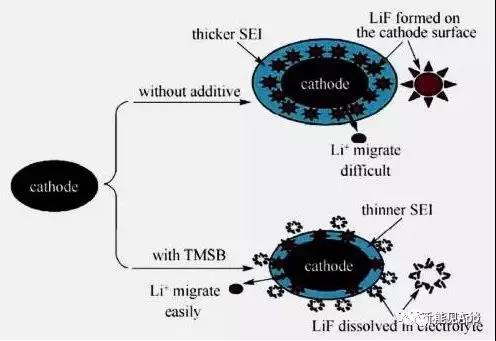 通過(guò)開(kāi)發(fā)和應(yīng)用新型的高壓電解液體系或者高壓成膜添加劑來(lái)提高電極/電解液界面的穩(wěn)定性是研發(fā)高電壓型電解液的有效途徑,從經(jīng)濟(jì)角度來(lái)說(shuō),后者往往更受青睞。這種提高電解液耐受電壓能力的添加劑一般包括含硼類、有機(jī)磷類、碳酸酯類、含硫類、離子液體及其它類型添加劑。含硼類添加劑有三(三甲基烷)硼酸酶、雙草酸硼酸鋰、雙氟草酸硼酸鋰、四甲基硼酸酯、硼酸三甲酯以及三甲基環(huán)三硼氧烷等。有機(jī)磷類添加劑包括亞磷酸酯、磷酸酯類。碳酸酯類添加劑包括含氟皖基化合物。含硫添加劑包括1,3-丙磺酸內(nèi)酯、二甲磺酰甲烷、三氟甲基苯硫醚等。離子液體類添加劑包括咪唑和季磷鹽類。