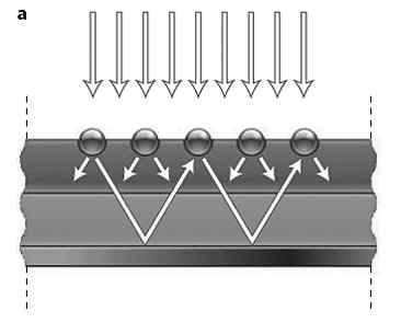 我所在的實驗室正在進(jìn)行的研究包括,怎么采用自主裝的方式來快速、低價地合成較大尺寸的納米級金屬結(jié)構(gòu),以捕獲光能。經(jīng)過研究,目前有幾種結(jié)構(gòu)已經(jīng)得到了驗證。如a所示,在表層嵌入納米顆粒,這樣光線就會廣泛地散射,而不是直接透過電池。所以光線會在電池中往復(fù)折返數(shù)次,提高了光吸收的比例。在圖b中,在中間界面嵌入納米顆粒,光線入射到這層納米顆粒中間時,就會被它們束縛住,不再會穿過電池,所以光線就被困在了電池內(nèi)部,大大提高了吸收效率。另外圖c中:在底層制作出納米尺度的金屬光柵結(jié)構(gòu),這樣入射的光線將會被金屬光柵結(jié)構(gòu)束縛在表面,光線只能沿著光柵方向傳播而不是直接從背面出射,這樣增加了光線在電池內(nèi)部的傳播距離,所以提高了吸收和轉(zhuǎn)化為電能的效率。