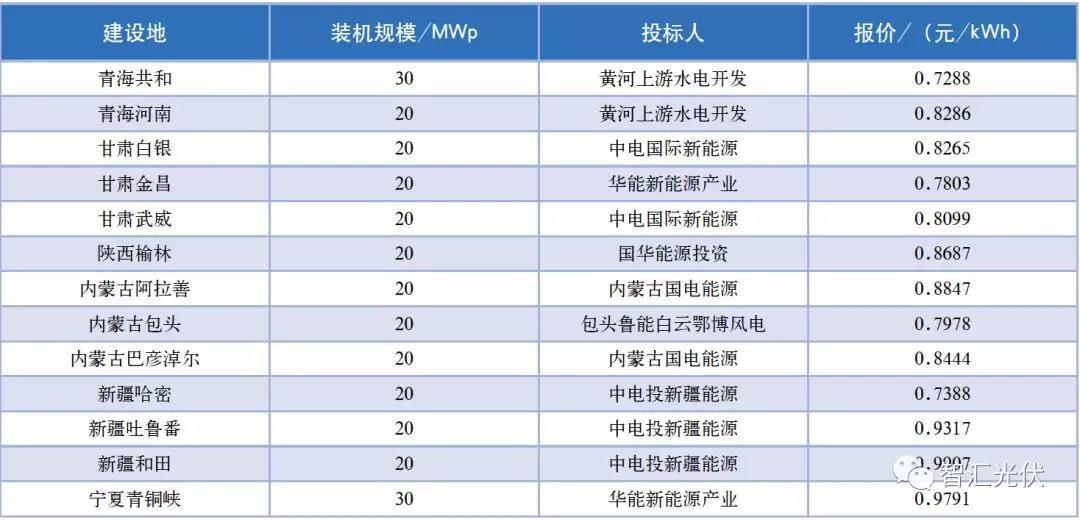 2010年7月國(guó)家啟動(dòng)第二批光伏特許權(quán)電站的招標(biāo),涉西部8省區(qū)13個(gè)項(xiàng)目,共計(jì)280MW。2010年光伏特許權(quán)招標(biāo)最低價(jià)為0.73元/kWh,并且多數(shù)價(jià)格在0.82-0.91元/kWh區(qū)間內(nèi),具體如下表所示。