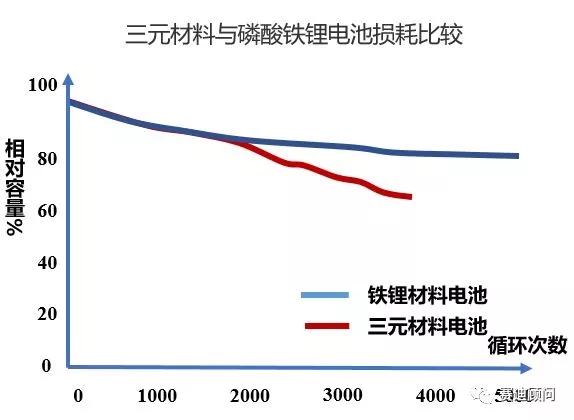 電池使用一段時間后都會有所損耗,從單體電池來看,三元電池損耗更快,磷酸鐵鋰電池在使用2000次后在很長的一段時間內(nèi)都相對穩(wěn)定,20000次后都能夠保持65%以上的電池容量。由此,磷酸鐵鋰電池具有更廣闊的梯次利用市場。