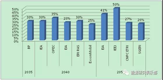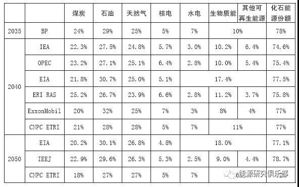 (一)各機(jī)構(gòu)對2040年世界能源格局的判斷基本一致