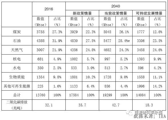 表2 IEA 2040年全球一次能源需求預(yù)測