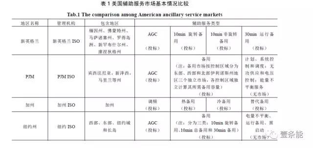 美國電力市場的輔助服務(wù)含:旋轉(zhuǎn)備用、非旋轉(zhuǎn)備用、AGC、替代備用、電壓支持和黑啟動(dòng)。