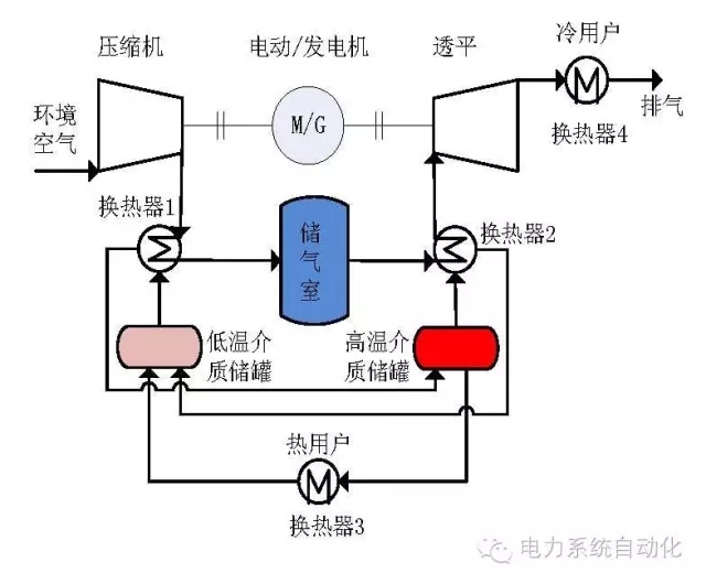 3)構(gòu)建獨(dú)立電力系統(tǒng)。CAES還可用于沙漠、山區(qū)、海島等特殊場合的電力系統(tǒng)。該類地區(qū)對儲能系統(tǒng)的壽命、環(huán)保等方面有特殊需求。在此情況下,若配合風(fēng)力發(fā)電、光伏發(fā)電、潮汐發(fā)電等清潔能源,結(jié)合非補(bǔ)燃CAES的冷熱電聯(lián)供特點(diǎn),則有望構(gòu)建低碳環(huán)保的冷熱電三聯(lián)供獨(dú)立電力系統(tǒng)。