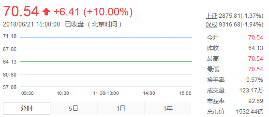 6月21日A股收盤,寧德時代迎來了上市以來連續(xù)8日漲停,股價報70.54元,總市值達(dá)1532億元,位居創(chuàng)業(yè)板第一,遠(yuǎn)超此前創(chuàng)業(yè)板的第一大權(quán)重股溫氏股份(1158億元),同時也遠(yuǎn)超新能源汽車龍頭比亞迪(1258.22億元)。寧德時代創(chuàng)造了動力電池企業(yè)的上市神話,或許連板勢頭還將繼續(xù)。