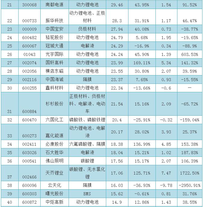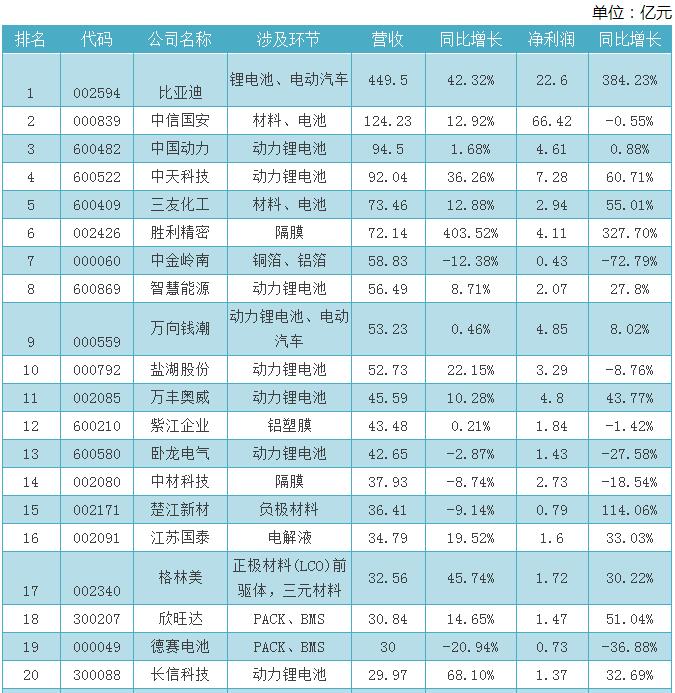 鋰電池上市公司2016上半年?duì)I業(yè)收入排名