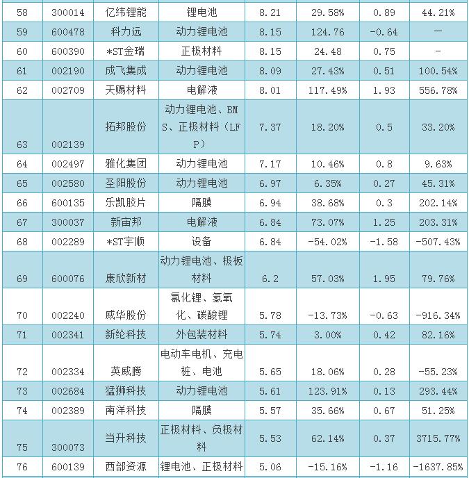 鋰電池營業(yè)收入排名前10的鋰電池上市公司分別是比亞迪、中信國安、中國動(dòng)力、中天科技、三友化工、勝利精密、中金嶺南、智慧能源、萬向錢潮、鹽湖股份。