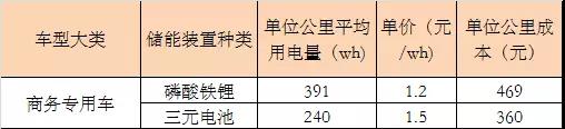 ▼表1:商務(wù)車(chē)不同儲(chǔ)能裝置所用成本核算