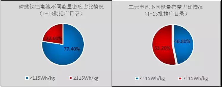 針對(duì)2017年1-12批和2018年第1批(標(biāo)注為第13批)新能源車(chē)推廣目錄中純電動(dòng)車(chē)型配套電池的能量密度和續(xù)駛里程進(jìn)行了詳細(xì)分析后發(fā)現(xiàn),三元電池的平均能量密度比磷酸鐵鋰高出10%(見(jiàn)圖3)。
