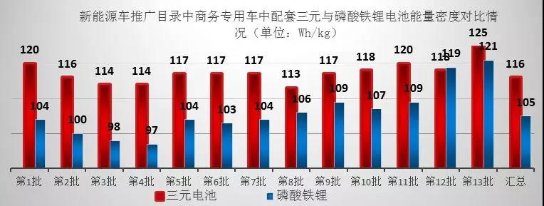 對(duì)2017年1-12批和2018年第1批新能源車(chē)推廣目錄中的1000多款型號(hào)的純電動(dòng)商務(wù)專(zhuān)用車(chē)配套電池的電量、續(xù)航里程和價(jià)格等數(shù)據(jù)進(jìn)行分析后發(fā)現(xiàn),使用三元電池的車(chē)型平均單位公里用電量比磷酸鐵鋰少38%。