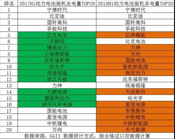 高工產(chǎn)研鋰電研究所(GGII)發(fā)布的《新能源汽車產(chǎn)業(yè)鏈數(shù)據(jù)庫》統(tǒng)計(jì)顯示,2018年上半年動(dòng)力電池市場(chǎng)競爭非常激烈,幾乎每個(gè)月動(dòng)力電池裝機(jī)總電量TOP10的名次都會(huì)發(fā)生變化。而裝機(jī)總電量TOP20的排名同比去年的變動(dòng)幅度更大,動(dòng)力電池市場(chǎng)整體競爭格局尚未完全形成。