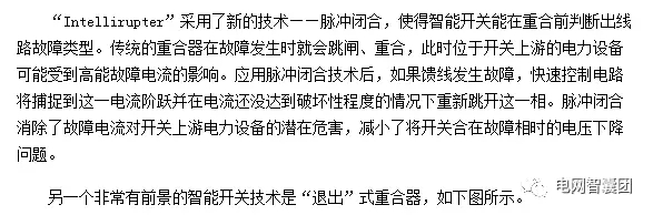 “退出”式重合器適用于易遭受瞬時(shí)故障的橫向電路。這種重合器在斷開電路后會重合,而不是讓熔斷器直接熔斷,因此可避免長時(shí)間停電。