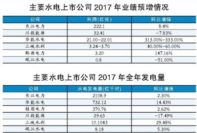 業(yè)績預(yù)告顯示,川投能源2017年凈利潤32.41億元,同比下降7.83%;岷江水電2017年凈利潤8000萬元,下降51%。兩家公司均在業(yè)績預(yù)告中對利潤銳減進(jìn)行了分析。