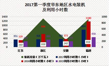 從水電設(shè)備平均利用小時(shí)數(shù)上看,2017年春季,華東地區(qū)僅福建省高于全國平均水平,為804小時(shí),江蘇省最低僅為351小時(shí)。與去年同期相比,作為華東水電大省,浙江、福建水電設(shè)備平均利用小時(shí)數(shù)下滑幅度較大,分別下滑248小時(shí)、376小時(shí)。而江蘇、安徽表現(xiàn)相對穩(wěn)定,并出現(xiàn)一定幅度的上漲。
