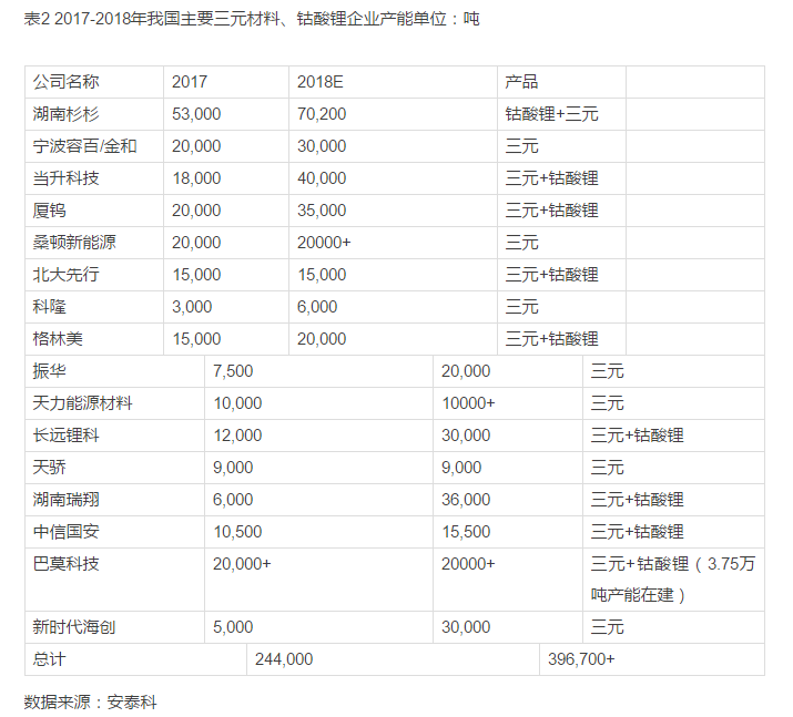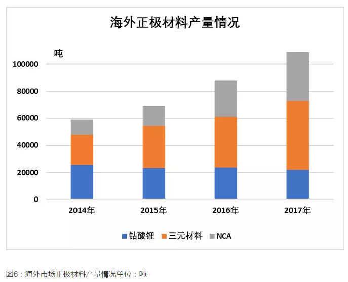 同時(shí),根據(jù)海外正極材料產(chǎn)量統(tǒng)計(jì),2017年海外廠(chǎng)商鈷酸鋰產(chǎn)量約為2.2萬(wàn)噸,同比下滑7.36%;三元材料產(chǎn)量預(yù)計(jì)將達(dá)到5.1萬(wàn)噸,同比增加37.17%;NCA產(chǎn)量將會(huì)達(dá)到3.6萬(wàn)噸左右,同比增加34%。海外廠(chǎng)商鈷酸鋰產(chǎn)量下滑,主要是受到國(guó)際鈷價(jià)大幅上漲,日韓等主要廠(chǎng)商更傾向于從中國(guó)按照加工貿(mào)易方式進(jìn)口鈷酸鋰,所以導(dǎo)致當(dāng)?shù)剽捤徜嚠a(chǎn)量有所減少。同時(shí)隨著新能源汽車(chē)領(lǐng)域需求的增加,也帶動(dòng)了海外廠(chǎng)商三元材料和NCA的產(chǎn)量提升。根據(jù)最新的銷(xiāo)售數(shù)據(jù)顯示,2017年特斯拉全球銷(xiāo)量達(dá)到10.31萬(wàn)輛,同比增加35.5%,基本與NCA產(chǎn)量的增幅相匹配。根據(jù)2016年松下電池公司與特斯拉簽訂的協(xié)議,未來(lái)四年松下電池公司將向特斯拉提供20億顆NCA18650電池。所以未來(lái)幾年NCA材料將集中圍繞特斯拉新能源汽車(chē)的產(chǎn)量而提高。如果特斯拉產(chǎn)量在2018年繼續(xù)提高,那么松下NCA的主要供應(yīng)商住友礦商將會(huì)繼續(xù)擴(kuò)大其N(xiāo)CA的產(chǎn)量以保證其正極材料的供應(yīng)。