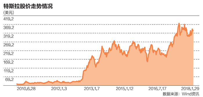 與銷售火熱相伴的是資本市場對特斯拉認可。2017年年中,特斯拉(TSLA)市值首次超過福特(F),并已接近通用汽車(GM)。而身為特斯拉CEO的馬斯克更是在2018年1月23日公開新的長期股權激勵計劃并立下“軍令狀”,“除非特斯拉在今后10年實現(xiàn)宏偉財務目標,否則我自己不會獲取報酬。”馬斯克說。
