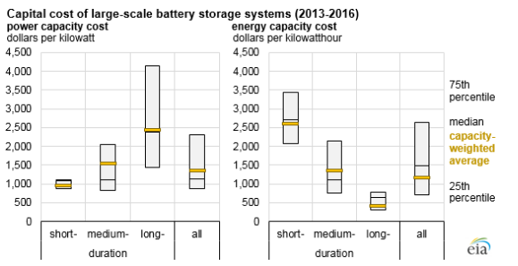 美國能源信息署2013-2016年的大規(guī)模電池儲能系統(tǒng)成本比較