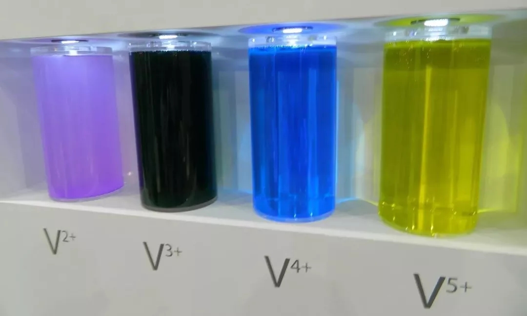 作為過渡金屬,釩的價(jià)態(tài)十分豐富,+2、+3、+4、+5 價(jià)離子在水里均有不錯(cuò)的溶解度,而且顏色也十分好看。釩 +2 價(jià)和 +5 價(jià)離子間有 1.25 V 的電位差,這就給了釩自己和自己組成電池的能力。