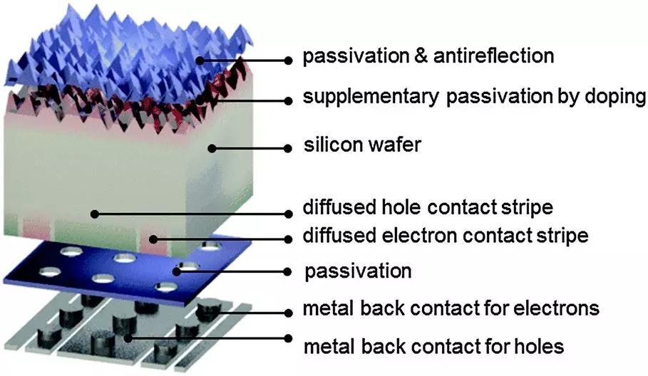 常規(guī)的太陽能電池板通常將用于電流傳輸?shù)睦|線網(wǎng)格設(shè)置在電池頂部,而這種做法會(huì)對(duì)入射光造成阻擋。IBC 電池將這些電極轉(zhuǎn)移到設(shè)備的背面,從而讓更多的光線得以通過,提高了電池的效率,但也使得制造工藝更為復(fù)雜。