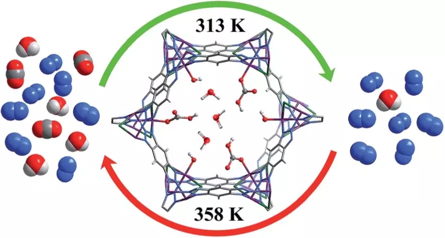 因此,研究人員正在努力研究可以降低 CO? 捕獲成本的方法,例如可以物理吸附 CO? 然后在非常溫和的條件下將其釋放的多孔材料——其中的一種就是金屬有機(jī)骨架(MOFs)材料。MOFs 的一個(gè)優(yōu)勢是它們的結(jié)構(gòu)和化學(xué)性質(zhì)是高度可調(diào)的,因此在理論上就可以設(shè)計(jì)出能夠特異性結(jié)合CO? 的 MOFs 材料(將 CO? 與其它氣體成分有效分離),而且這種 MOFs 材料還可以在溫和加熱的情況下釋放出吸附的 CO?。