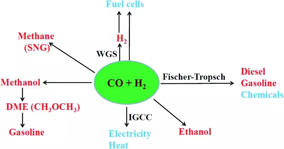 除了將 CO? 注入地下,另一個(gè)更好的選擇是將其轉(zhuǎn)化成其它有用的化學(xué)品。通常用氧氣和蒸汽來處理煤炭以產(chǎn)生合成氣——即氫氣和一氧化碳的混合物。然后合成氣可以通過“費(fèi)托法”來制造液態(tài)烴燃料,或者生產(chǎn)如甲醇這樣的關(guān)鍵化學(xué)品。