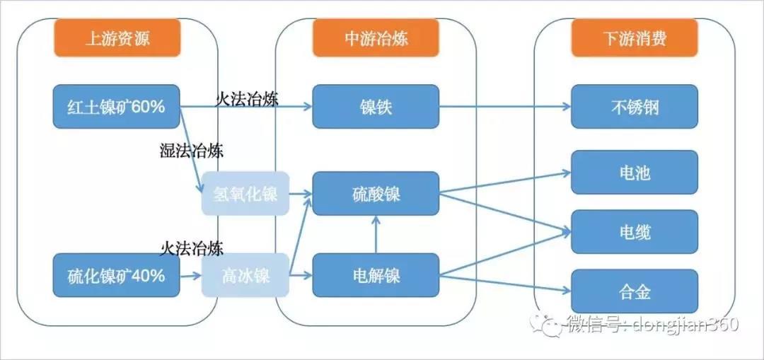 對于三元電池中的金屬鎳,總體表現(xiàn)為供需失衡,鎳價或持續(xù)向好。鎳的原材料是紅土鎳礦和硫酸鎳礦,硫酸鎳礦的增產(chǎn)有限,紅土鎳礦是全球最主要的鎳供應來源,但是紅土鎳礦的產(chǎn)品是鎳鐵,再通過鎳鐵生產(chǎn)不銹鋼,而從紅土鎳礦到氫氧化鎳到硫酸鎳的生產(chǎn)線全球一共有兩家企業(yè)有這種生產(chǎn)線,而且從生產(chǎn)的角度講穩(wěn)定性不大。所以未來鎳的增量主要來自于紅土鎳礦。