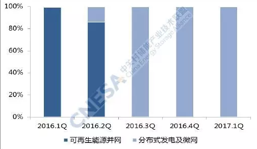 從應(yīng)用分布上看,新增投運項目全部應(yīng)用于分布式發(fā)電及微網(wǎng)領(lǐng)域,該領(lǐng)域同比增長1150%,環(huán)比2016年四季度下降93%。從技術(shù)分布上看,新增投運項目為鋰離子電池和鉛蓄電池項目,二者的裝機比重分別為40%和60%。
